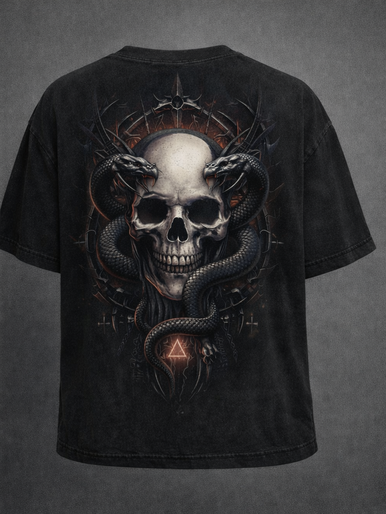 Yılan taş kafa tasarımlı T-shirt